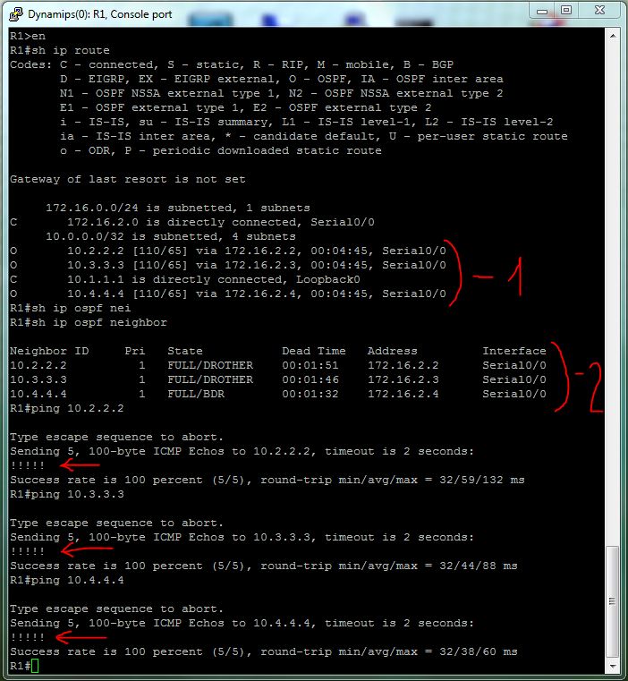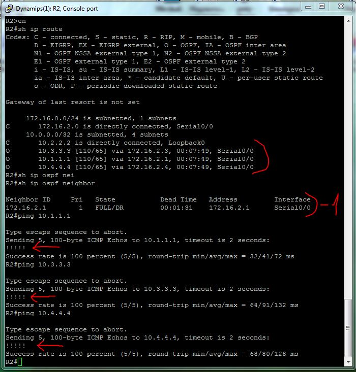 - *Mar 1 00:10:37.463: %OSPF-5-ADJCHG: Process 1, Nbr 172.16.2.1 on Serial0/0 from LOADING to FULL, Loading Done – все заработало :);